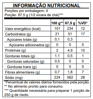 RENDIMENTO: Um pacote de Risoto D com D Foods serve 4 pratos com cerca de 250 g.